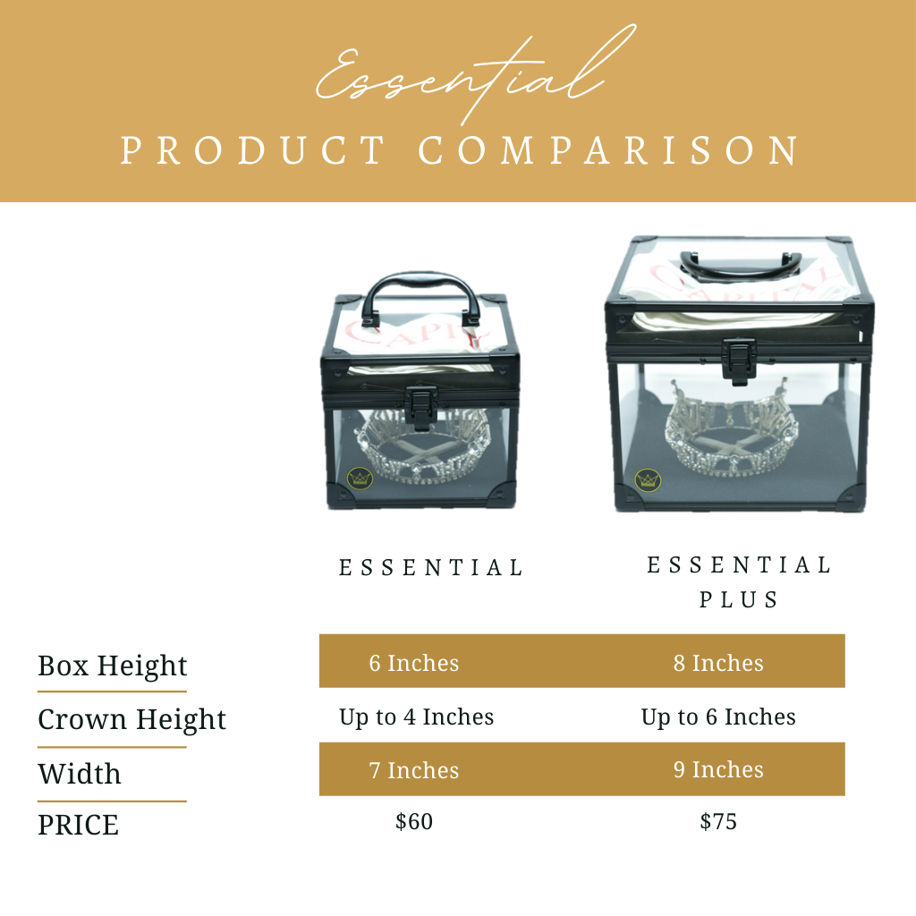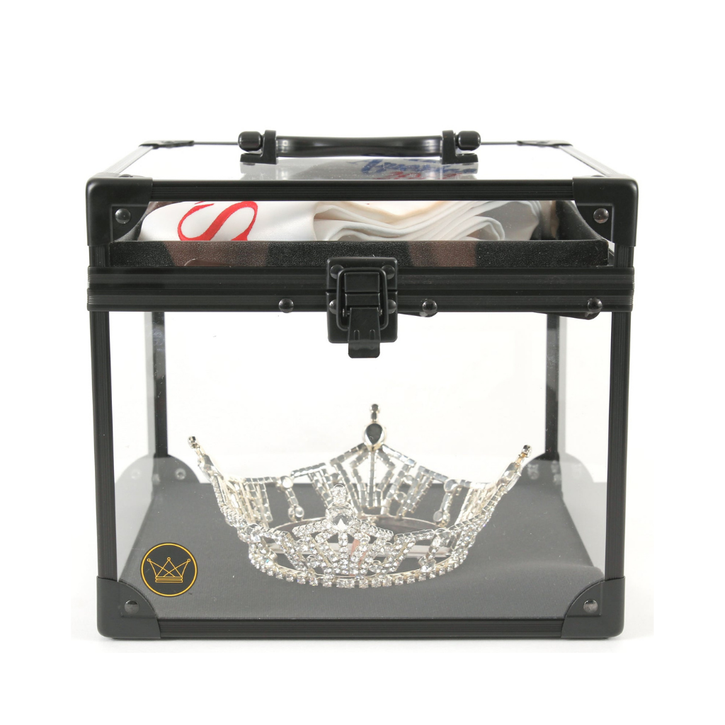 Love our Essential Crown Box but your crown won't fit? We are now offering this larger version of our Essential Crown Box! Perfect for titleholders on the go, the Essential Crown Box Plus keeps your crown and sash safe while traveling. (Crown and sash not included)